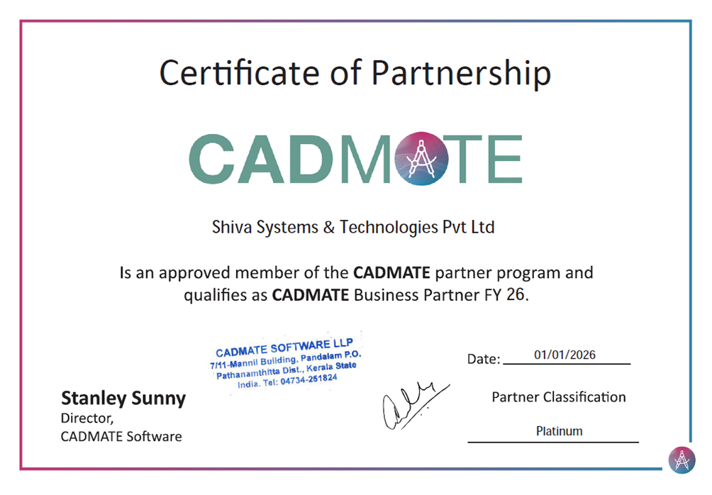 Shiva Systems and Technologies Pvt Ltd THE PLATINUM PARTNER OF CADMATE IN INDIA